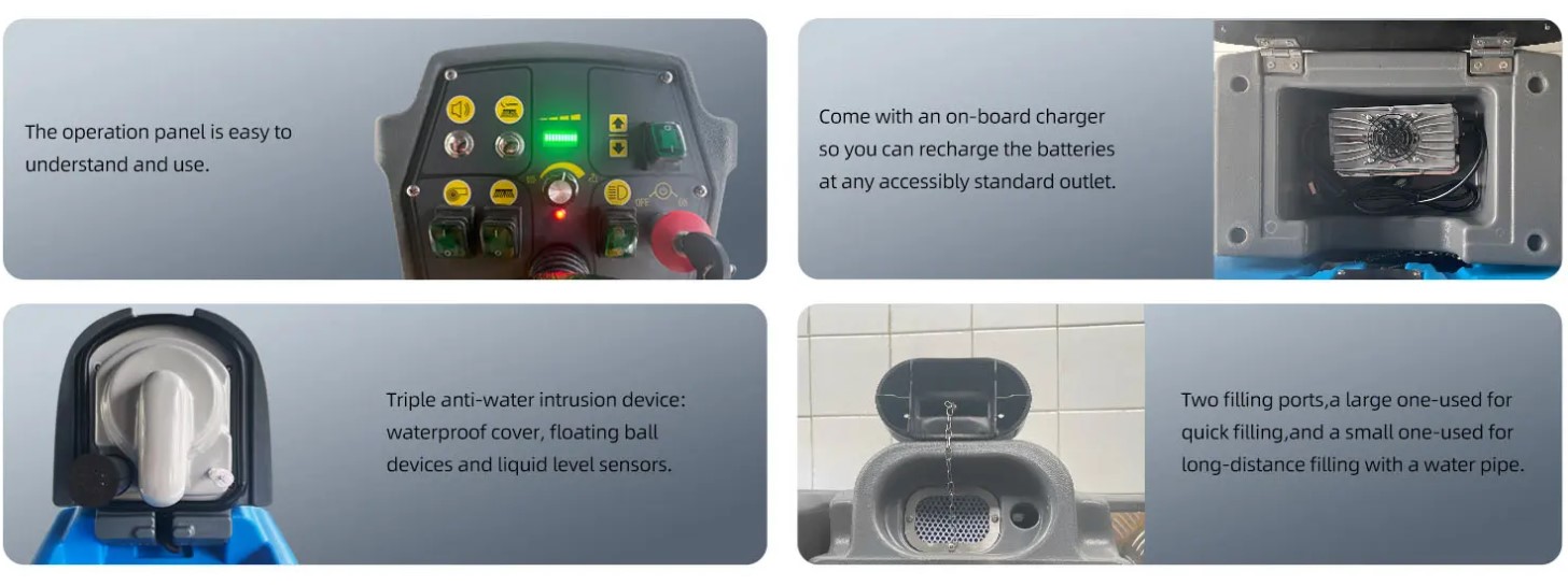 Et af nøgleelementerne i Rengøringsmaskine J115 er det pålidelige blysyre vedligeholdelsesfrie batteri, der leverer en driftstid på 3,5–4,5 timer per opladning. Dette gør maskinen velegnet til store anlæg som lagre, hospitaler og indkøbscentre. Den indbyggede biloplader sikrer nem opladning uden ekstra udstyr. Opladeren har beskyttelse mod vandindtrængning, overbelastning og skader. En klar batteriniveauindikator advarer operatøren om opladningsbehov og forhindrer overafladning. Hurtig og enkel opladning minimerer nedetid, og batteriet kan udskiftes eller opgraderes for længere drift. Det energieffektive design reducerer strømforbruget, og blysyreteknologien kræver ingen hyppig påfyldning af væske, hvilket øger pålideligheden og sænker vedligeholdelsesomkostningerne.